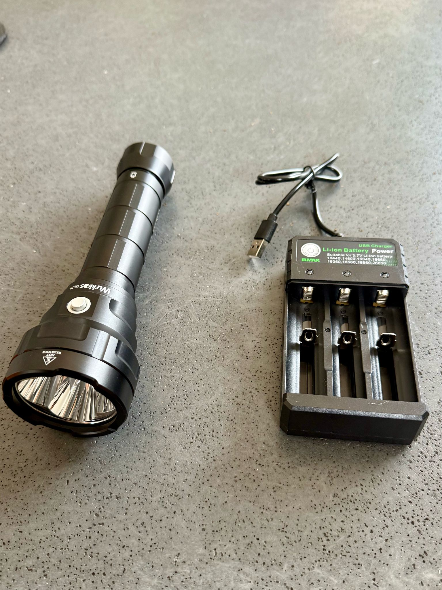 Lampe WURKOS 13000 Lumens avec chargeur et batteries .C’est une lampe compacte très puissante dotée d’une super autonomie.